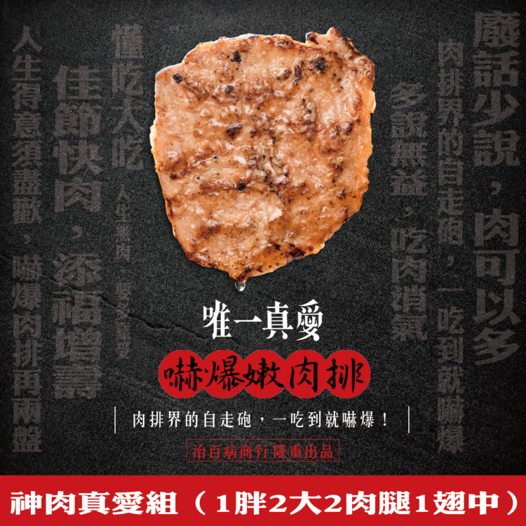 (1)嚇爆嫩肉排:胖胖包500g*1+大包300g*2